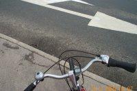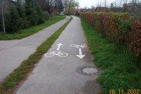 O odnosu upravitelja prometnih površin do kolesarjev pa priča tudi talna oznaka nekaj deset metrov prej (posneto 16. novembra 2002).