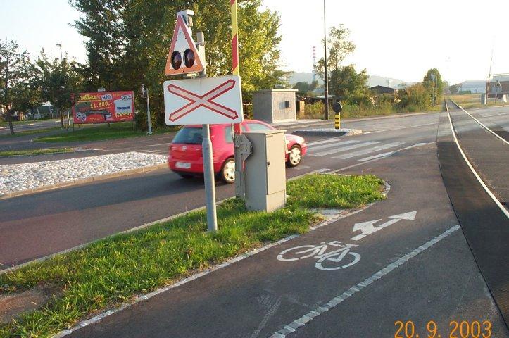 Kolesarska steza okoli krožišča je speljana popolnoma neustrezno ker kolesarja oddalji iz krožišča in iz območja zaznavanja avtomobilistov. V gostem prometu to predstavlja za kolesarje hudo nevarnost.