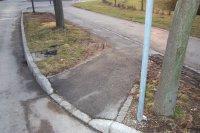 Pred križiščem je kolesarski promet speljan z vozišča na pločnik čez visok robnik in oster dvojni ovinek ter naprej na ozko kolesarsko stezo. Kolesar mora na tem mestu skoraj popolnoma ustaviti ali pa zapeljati čez blatno zelenico.