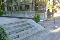 predstalja za kolesarje zapleten sistem klančin, stopnic in ovinkov.
