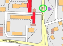 nasproti bencinske črpalke, je robnik preko kolesarske steze v tako