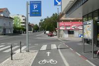kolesarska steza pred trgovino Hofer na križišču Njegoševe ceste in