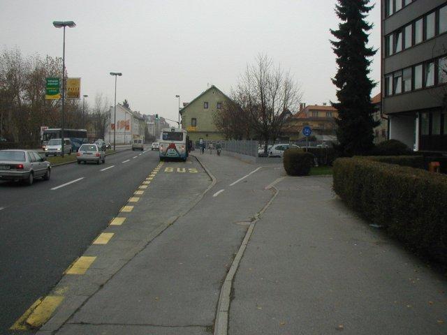Kolesarjem najprijaznejša rešitev bi bila kolesarska steza, ki bi se nadaljevala do zgradbe Mavrica, pri kateri se pločnik tako zoži, da - po pravilniku - zadošča le za pešce. Ker kolesarji vsakodnevno vozijo mimo Mavrice, bi bilo najbolje to stanje uzakoniti s precej ožjo kolesarsko stezo, kot jo zahtevajo pravila.