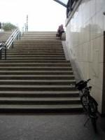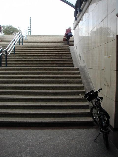 stopnišču je le zelo ozka rampa, ki kolesarju ne omogoča, da bi po njej