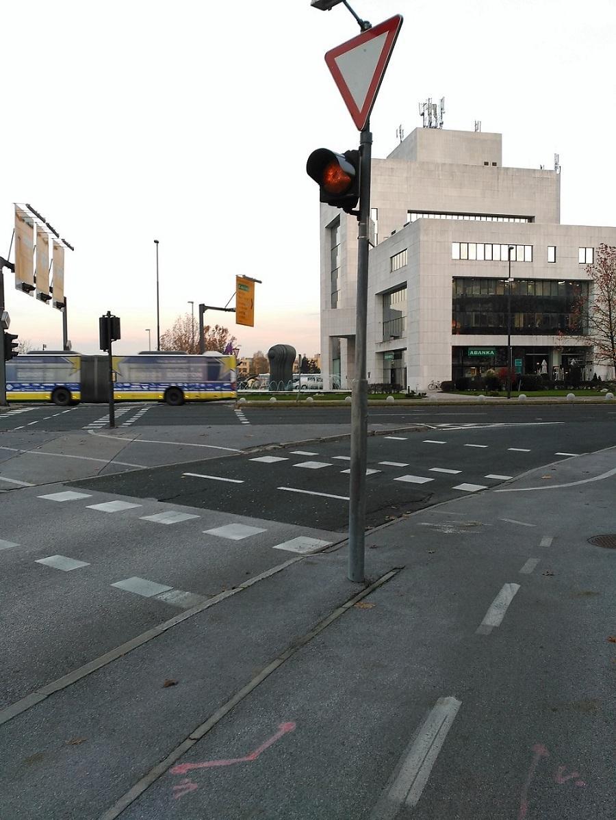 nadaljevanju vožnje po Dunajski cesti čez obvoznico prečkati nevaren