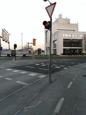 semafor za zavijanje desno, kolesarska steza bi bila speljana
